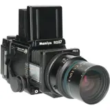 The Mamiya RZ67 is a medium format single-lens reflex system camera manufactured by Mamiya. There are three successive models: the RZ67 Professional (first model released in 1982), RZ67 Professional II (released in 1995) and RZ67 Professional IID (released in 2004). RZ67 is a modular camera system, meaning lenses, viewfinders, ground glasses, film winders and film backs are all interchangeable. It is primarily designed for studio use, but can also be used in the field. The RZ67 Sekor lenses have built-in electronic leaf shutters which are cocked and triggered from the body. Focusing is performed with a bellows on the body instead of the lenses.