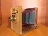 Wachtl houten camera 9x12. Een zeer zeldzame reiscamera.Hij is gemaakt tussen 1897-1903.De lenzen zijn schoon, geen krassen.Diafragma max. 18 cm.Een prachtige antieke camera met een koperen statief!