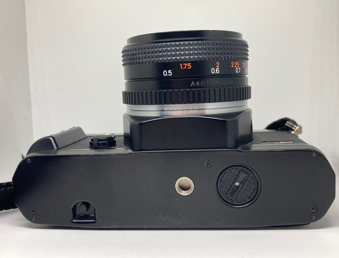 Een enorme spiegelreflexcamera van Japanse makelij in een elegante zwarte kleur.