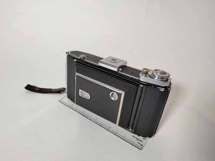 Zeiss Ikon Ikonta 521/2 vouwcamera. F= 10,5 cm, 1/3,5. Formaat 6x9cm. Lens is zeer helder, geen krassen, geen schimmel, geen balsemafscheidingen. Alle snelheden werken, zelfontspanner werkt niet goed. Voor onderdelen of display. Je kunt het ook gebruiken om te fotograferen. Extra Zeiss Luxmeter.