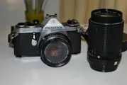 Te koop aangeboden: Pentax spiegelreflex camera + smc 135 mm objectief.