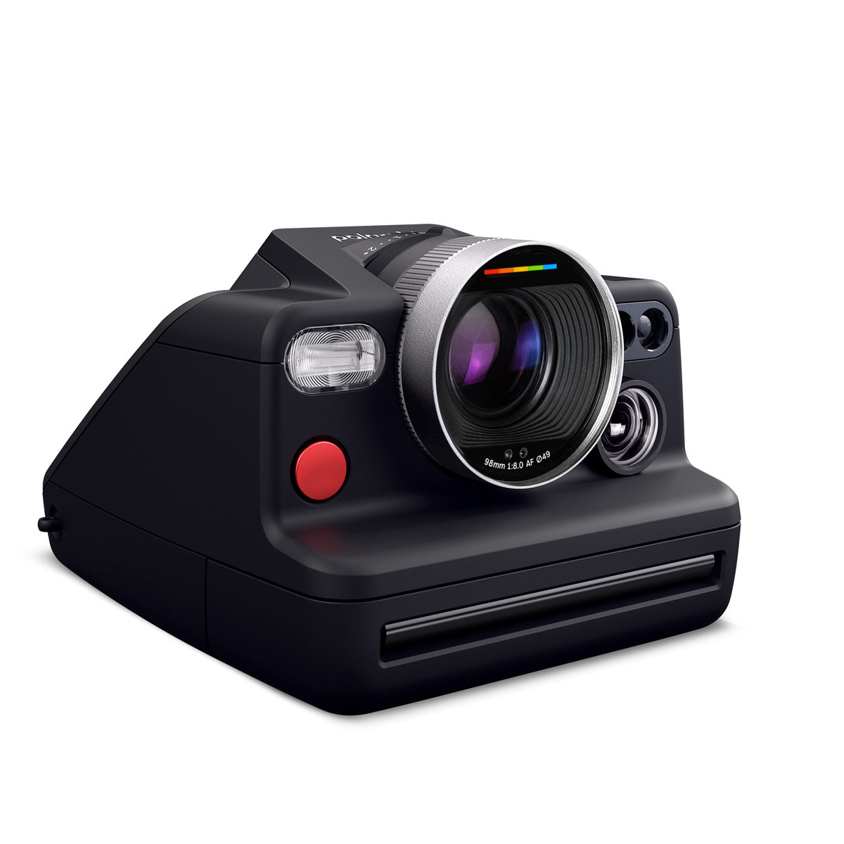 De I-2 is voorzien van Polaroid's meest geavanceerde lenssysteem tot nu toe, een continu autofocussysteem met 3 lenzen dat een LiDAR-sensor gebruikt om een onderwerp te vergrendelen en de scherpste resultaten tot nu toe te leveren. Het autofocusframe in het midden van de zoeker, aangedreven door een stappenmotor, bepaalt en geeft de afstand van het brandpuntsvlak tot het onderwerp weer, die samen met de belichting kan worden vergrendeld door de ontspanknop half in te drukken.