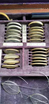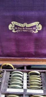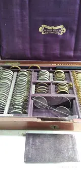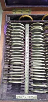 Oogartsapparatuur in notenhouten kist, inhoud:
