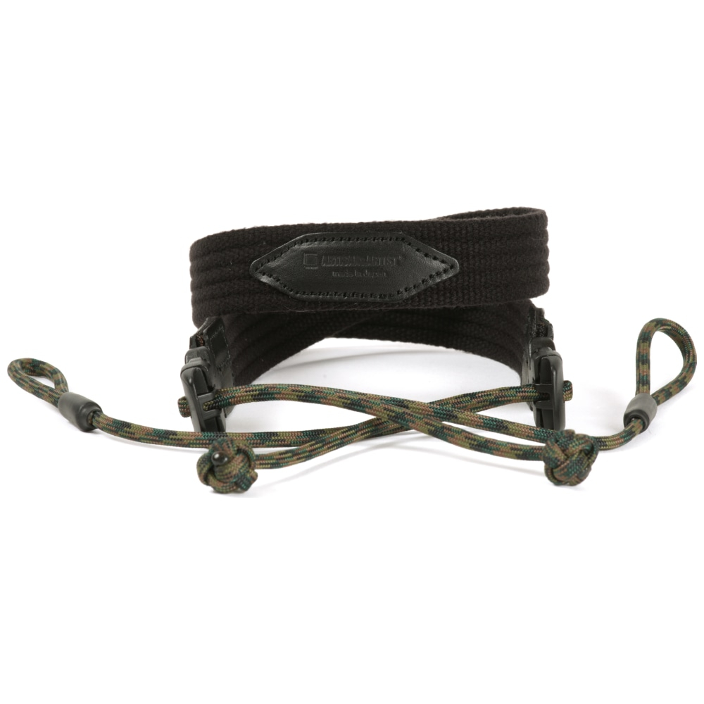 Het gebruik van hoogwaardig leer, met zorg met de hand gestikt door vakbekwame ambachtslieden, versterkt de verbinding tussen het parachutetouw en de tape. Hierdoor ontstaat niet alleen een stijlvolle uitstraling maar ook duurzaamheid en kracht, waardoor deze riem ideaal is voor zowel lichte als middelzware camera's.