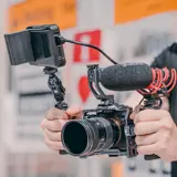 Rust je Sony A7 III, A7S III, A7R IV of A1 camera uit met een ergonomische kooi van aluminiumlegering met behulp van de Quick Release Camera Cage van Falcam. Het op maat gemaakte ontwerp behoudt toegang tot de bedieningselementen en poorten van jouw camera. Met meerdere 1/4"-20 en 3/8"-16 ARRI-stijl schroefdraad kun je scharnierende armen en secundaire monitoren op jouw rig monteren. Met een cold shoe-bevestiging kun je een shotgun-microfoon of invullicht bevestigen. Deze cage is compatibel met Falcam F22 en F38 quick release accessoires voor integratie met één knop van extra armen en adapters om jouw montagemogelijkheden te vergroten.