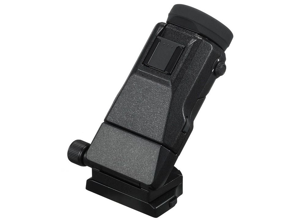 Na het monteren is de zoeker maximaal 45° te verdraaien, en maximaal 90° omhoog te klappen. Hierdoor kun je vanuit bijzondere hoeken en standpunten fotograferen. Bijvoorbeeld met de camera op de grond terwijl je vanaf de bovenkant in de opgeklapte zoeker kijkt.