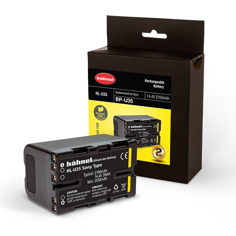 De Hähnel HL-U35 accu is een oplaadbare accu met een capaciteit van 2700mAh. Dit is een hogere capaciteit dan de Sony BP-U35 accu en heeft dus een lange levensduur. Deze 14,4-Volt camera-accu zorgt voor 39 Watt uur stroom en heeft hoogwaardige kwaliteitscellen die worden beschermd door het beveiligingscircuit. Met de drukknop op de accu kun je eenvoudig en snel de resterende capaciteit zien zonder dat je de batterij op een camera hoeft te plaatsen.