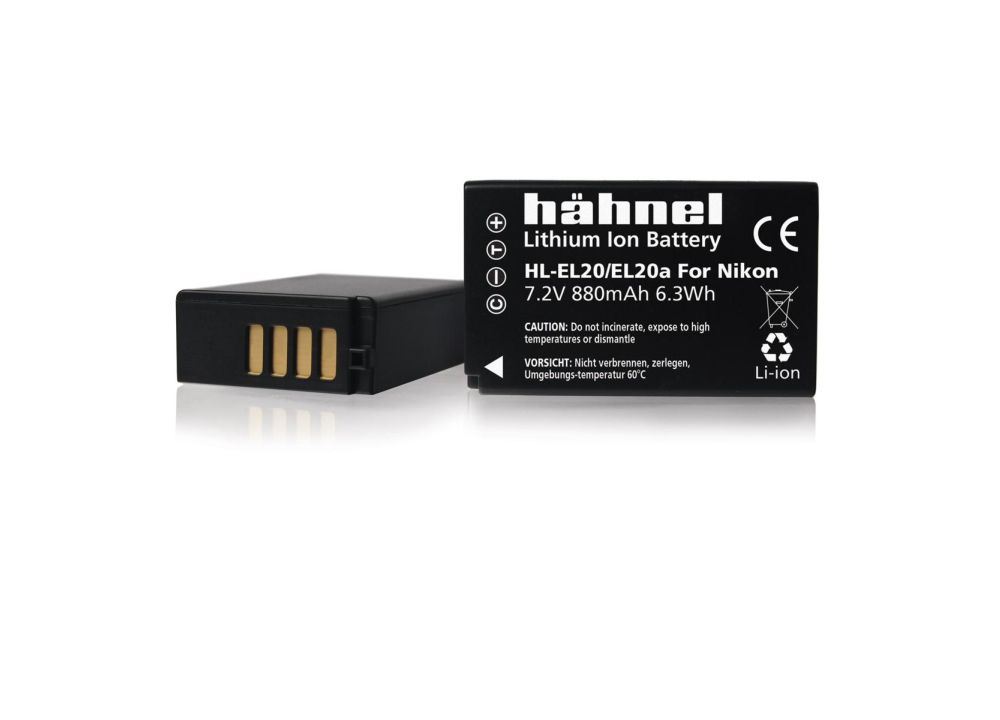 Energie is de eerste levensbehoefte van een fotograaf. Daarom is het beslist noodzakelijk om goede accu's en batterijen in je camera te hebben. Hähnel levert die accu's! Kwaliteit, betrouwbaarheid en innovatie staan daarbij voorop. De HL-EL20 is een 7,2-Volt camera-accu die geschikt is als alternatieve batterij voor digitale Nikon 1 compacte systeemcamera's. Deze uitstekende camera-accu is geschikt voor de Nikon 1 J1 , de Nikon 1 J2 , de Nikon 1 AW1, de Nikon 1 J3 en de Nikon 1 S1. Ook gaat hij in de Nikon Coolpix A edelcompact. De capaciteit van de HL-EL20 is 880 mAh en hij is gelijkwaardig aan de originele Nikon EN-EL20 camera-accu.