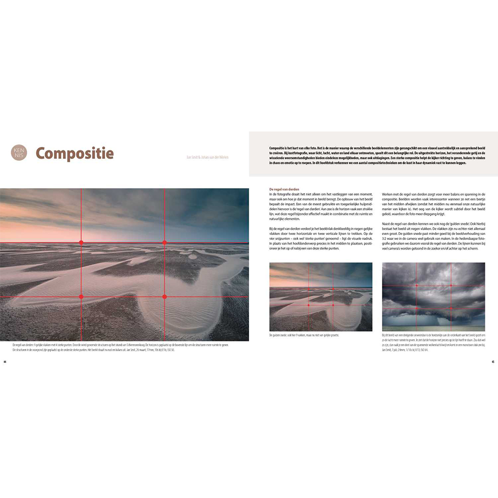Het Handboek Kustfotografie bevat veel voorbeeldbeelden en inzichten van ervaren fotografen. Dit helpt je om anders te kijken naar je omgeving en nieuwe ideeën op te doen voor je eigen fotografie.