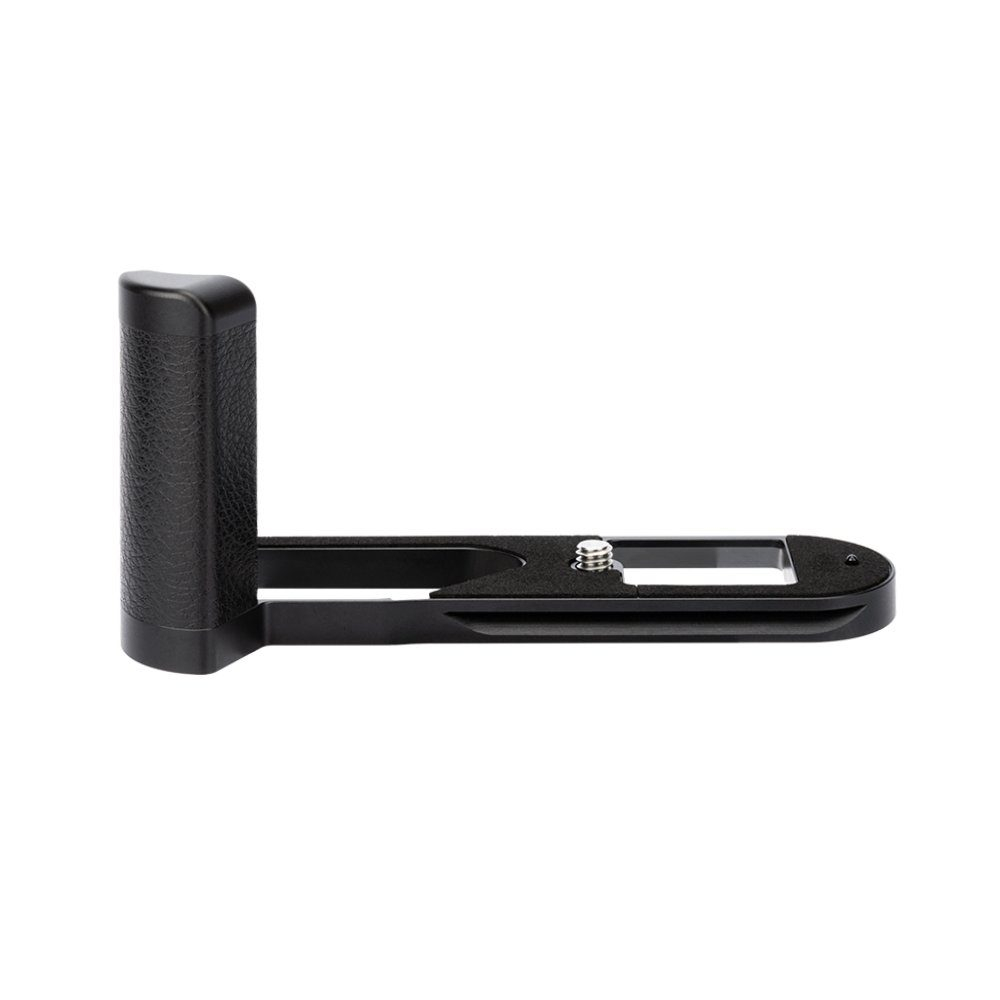 De handgreep is voorzien van een antislip microvezel lederen oppervlak op de greep, wat een comfortabele en stevige grip biedt voor een betere controle tijdens het fotograferen. Bovendien is de handgreep voorzien van een microvezeldoek op het contactoppervlak met de camerabodem om de camerabodem te beschermen tegen krassen. De handgreep is ontworpen met het oog op gebruiksgemak en heeft een Arca-Type snelkoppelingsplaat, zodat fotografen hem direct op een Arca-Type balhoofd kunnen schuiven. Deze snelle en veilige bevestiging maakt het schakelen tussen handheld en statief opnames eenvoudig. De handgreep heeft ook een 1/4"-20 binnenschroefdraad aan de onderkant, zodat gebruikers de camera op een statief kunnen bevestigen voor gestabiliseerde opnamen. Bovendien biedt de handgreep gemakkelijk toegang tot het batterij- en geheugenkaartcompartiment van de camera zonder dat je de handgreep hoeft te verwijderen.