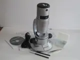 Via de monotubus kan dit instrument worden aangesloten op een laptop, maar het kan ook los worden gebruikt. Deze tubus biedt plaats aan een gefixeerd Wide Focus oculair 7x. Via een roterende schakelaar met een drietal objectieven (3x/11x/50x) worden vergrotingen van 20x, 80x en 350x onderzocht. In de buis bevindt zich ook de USB-camera, met een resolutie van 1.280x1.024 pixels. De scherpstelling vindt plaats met de handmatige hoogteinstelling van het objecttableau. Dit tableau gaat over twee draaibare voorbereidingsklemmen. De boven- en onderzijden van de te onderzoeken objecten kunnen elektrisch en dimbaar worden belicht, gevoed door de USB-kabel. De optiek is schoon, helder en zonder krassen. Bij dit digitale instrument behoort een uitgebreide set operationele en digitale accessoires en een betrouwbare hoes. Afmetingen: circa 28 x 16 cm.