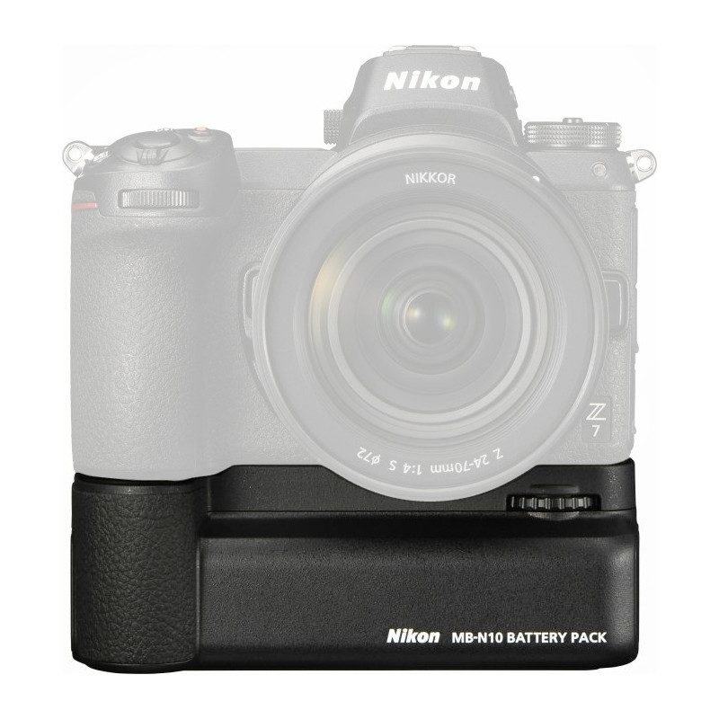 De Nikon MB-N10 battery grip verlengt de autonome gebruiksduur met circa 1,8x en zorgt voor een comfortabeler evenwicht bij het gebruik van lange teleobjectieven. De grip biedt plaats aan maximaal twee Nikon EN-EL15b oplaadbare Li-ion-accu's (apart verkrijgbaar). Het tegen stof en vocht beschermde battery pack beschikt voor elk van de twee accuvakken over een LED-aanduiding voor het opladen van de accu. Hotswapping van accu's wordt ondersteund, wat handig is voor gebruik bij langdurige video-opname of intervalfotografie.