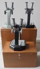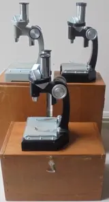Voor de liefhebber van vintage laboratorium gereedschap, 3 geweldige microscopen met bijbehorende opbergboxden van hout, de microscopen zijn in nieuwstaat, en worden kostenloos verzonden wereldwijd. 1 microscoop is incluisief gebruiksaanwijzing.