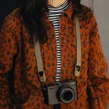 De riem is gemaakt van soepel nylon webbing met een zachte structuur en subtiele grip, waardoor hij comfortabel draagt zonder te glijden. De aluminium hardware is duurzaam en voelt luxe aan. De Leash is beschikbaar in meerdere stijlvolle kleuren die perfect passen bij je camera-uitrusting.