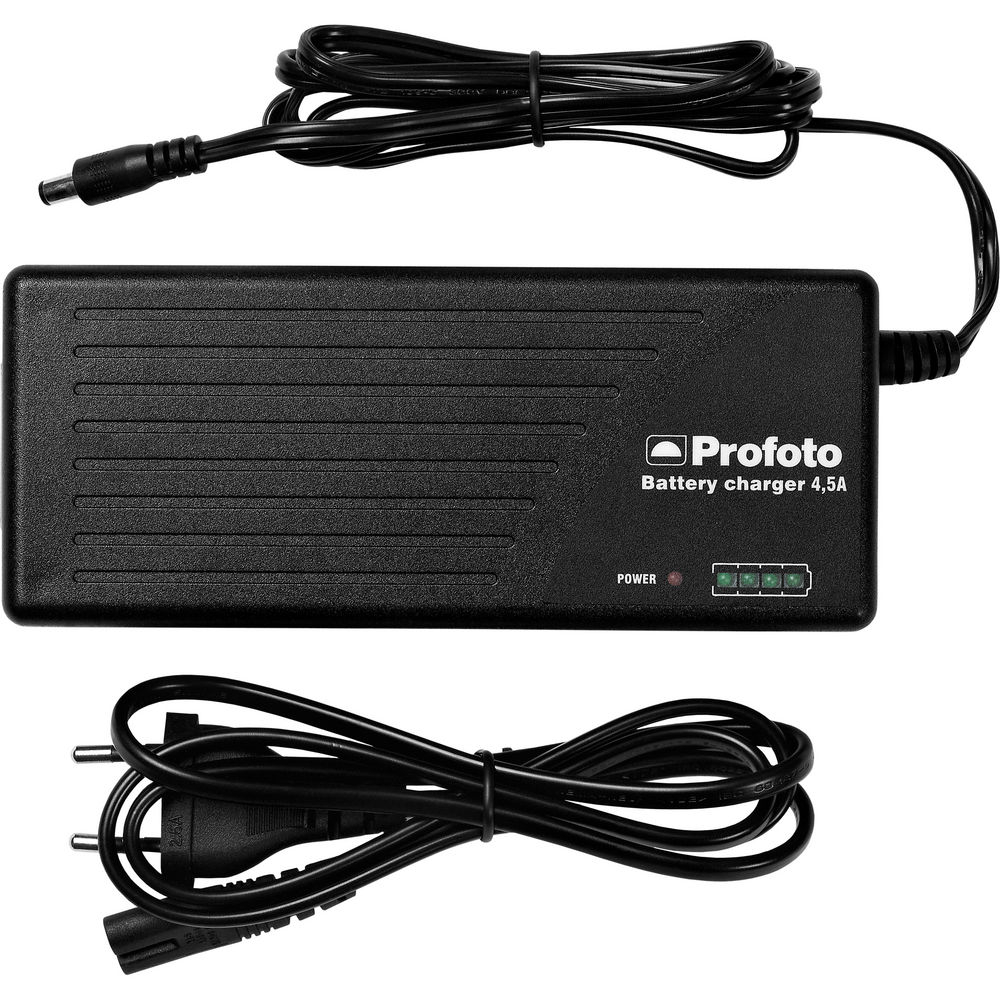 De snelle batterijlader 4,5A voor B1 500 AirTTL van Profoto laadt de lithium-ion batterij van de B1 in 1 uur op. De multispanningslader heeft LED-indicatoren om de laadstatus eenvoudig te controleren.