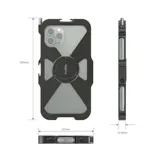 De SmallRig 2471 Pro Mobile Cage voor iPhone 11 Pro is ontworpen om je iPhone 11 Pro te beschermen, en toegang te bieden om andere accessoires te bevestigen voor mobiele foto & video opnamen, live streaming, interviewen, vlogging, etc. Het beschikt over een duimschroef aan één kant om een snelle montage en demontage van de telefoon te garanderen. Hij wordt geleverd met twee cold shoes en meerdere 1/4"-20 schroefdraad gaten, waarmee verschillende accessoires kunnen worden bevestigd, zoals een microfoon, LED-lamp, statief, enz., en ondersteunt zowel horizontale als verticale opnamen. Hij is compatibel met SmallRig aluminium zijhandgreep voor Smartphone Cage HSS2424 voor opnamen uit de hand, en SmallRig Mobile Phone Cable Clamp BSC2390 om de kabel tijdens het fotograferen vast te zetten. De ingebouwde rubberen vulringen helpen schokken te absorberen en voorkomen dat de telefoon krassen oploopt. Het holle ontwerp voor gewichtsverlies en koeling van de mobiele telefoon vermijdt de zijknoppen en de interface, evenals het antenne gebied om het risico van signaalinterferentie te voorkomen. Er is ook een opening voor een polsbandje.