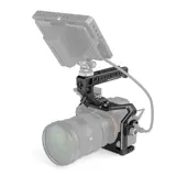 De SmallRig 3009 Master Kit voor Sony Alpha 7S III A7S III A7S3 bevat een aluminium cage, een HDMI-kabelklem, een dunne NATO-rail en een NATO-handgreep met snelsluiting. De cameracage is voorzien van talrijke 1/4 "-20 en 3/8" -16 montageschroefdraden, een NATO-rail, een koude schoenbevestiging en ARRI-achtige bevestigingen voor accessoires.