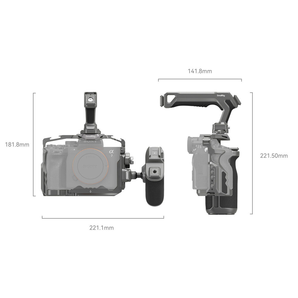 De SmallRig 4539 HawkLock Quick Release Advanced Cage Kit for Sony Alpha 7R V / Alpha 7 IV / Alpha 7S III is en een uniek ontworpen cage met een snelle ontgrendeling, is stabiel en stevig, één druk om te monteren, loslaten om te vergrendelen, wat de demontage-efficiëntie verbetert.