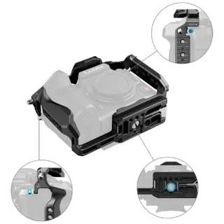 De cage is voorzien van meerdere 1/4"-20 en 3/8"-16 schroefdraadgaten, ARRI-positiepunten, cold shoe mounts en NATO-rails. Hierdoor kun je een breed scala aan accessoires bevestigen, zoals handgrepen, monitorhouders of extra verlichting. De meegeleverde HDMI/USB-C kabelklem voorkomt dat kabels per ongeluk losraken en beschermt de poorten van je camera.