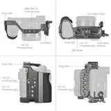 De cage is uitgerust met meerdere 1/4"-20 en ARRI 3/8"-16 schroefdraadgaten, een cold shoe mount, NATO-rails en een QD-socket, waardoor je een breed scala aan accessoires kunt bevestigen. Daarnaast zijn er riemgaten aan beide zijden voor compatibiliteit met hand- en schouderriemen.