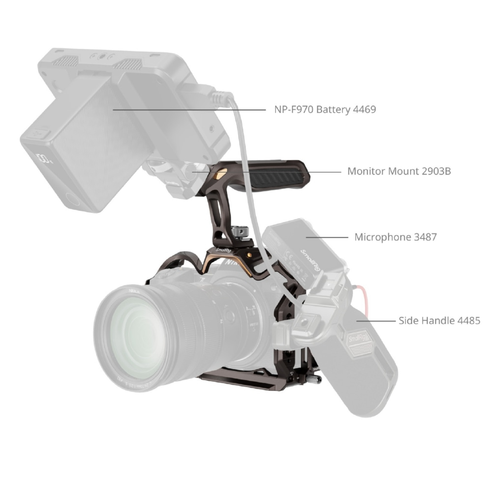 De SmallRig 5259 Night Eagle Cage Kit is een complete rig-oplossing voor Nikon Z5II, Z5, Z6, Z6II, Z7 en Z7II systeemcamera's. Deze kit combineert de solide bescherming en bevestigingsopties van de Night Eagle Cage met een ergonomische top handle en een universele HDMI/USB-C-kabelklem, waardoor je direct klaar bent voor professionele videoproducties.