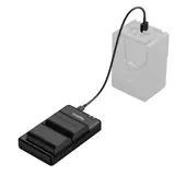 De set bevat een compacte USB-C oplader waarmee je de batterij snel en efficiënt kunt opladen. Dankzij het lichte en draagbare ontwerp neem je de lader eenvoudig mee in je cameratas, perfect voor gebruik onderweg of tijdens producties waar flexibiliteit belangrijk is.