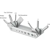 Deze toolset bevat een reeks van de meest gebruikte schroef- en inbustypes die perfect zijn voor het monteren en aanpassen van SmallRig-accessoires en andere apparatuur. De tools klappen eenvoudig uit en zijn stevig vergrendeld tijdens gebruik, net als bij een klassiek zakmes.
