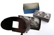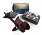 Early hand held stereoviewer with unusual handle. Including 34 stereoviews of South- and Central American interest. Countries include Peru-Mexico-Chili-Urugay-Brazil-Equador-Argentina and others. Small chip of handle and viewer. A very interesting and unusual set of views.
