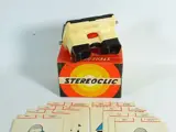 Stereoclic Bruguiere viewer met bijzondere kaarten van oud cruiseschip, Oost Berlijn, Monaco aquarium en meer