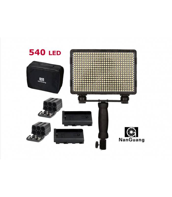 De NanGuang CN-5400XPRO is een krachtige bicolor LED-lamp met 540 LED-diodes en biedt instelbare intensiteit en kleurtemperatuur van 3200K tot 7500K. Deze veelzijdige lamp kan worden gevoed door Sony NPF- of Canon LP-E6/LP-E8-batterijen, evenals 6 of 12 AA-batterijen. De lamp wordt geleverd met een handgreep, basis, twee batterijadapters, een filterset en een draagtas. De CN-5400XPRO heeft een CRI van 95 en een lichtopbrengst van 4020 lux op 1 meter.