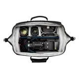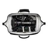 Extra brede opening biedt onbelemmerde toegang tot de uitrusting via slechts één snelle ritssluiting in het midden. Camera kan worden opgeborgen met bevestigde grondplaat, microfoon en/of matte box.