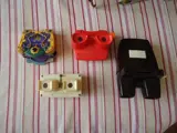combinatie van 4 stereoscopen, 1 model E met verlichtingsoptie, 1 Harry Potter viewmaster met 6 kaarten, 1 3d viewer en 1 ivoor simplex lestrade