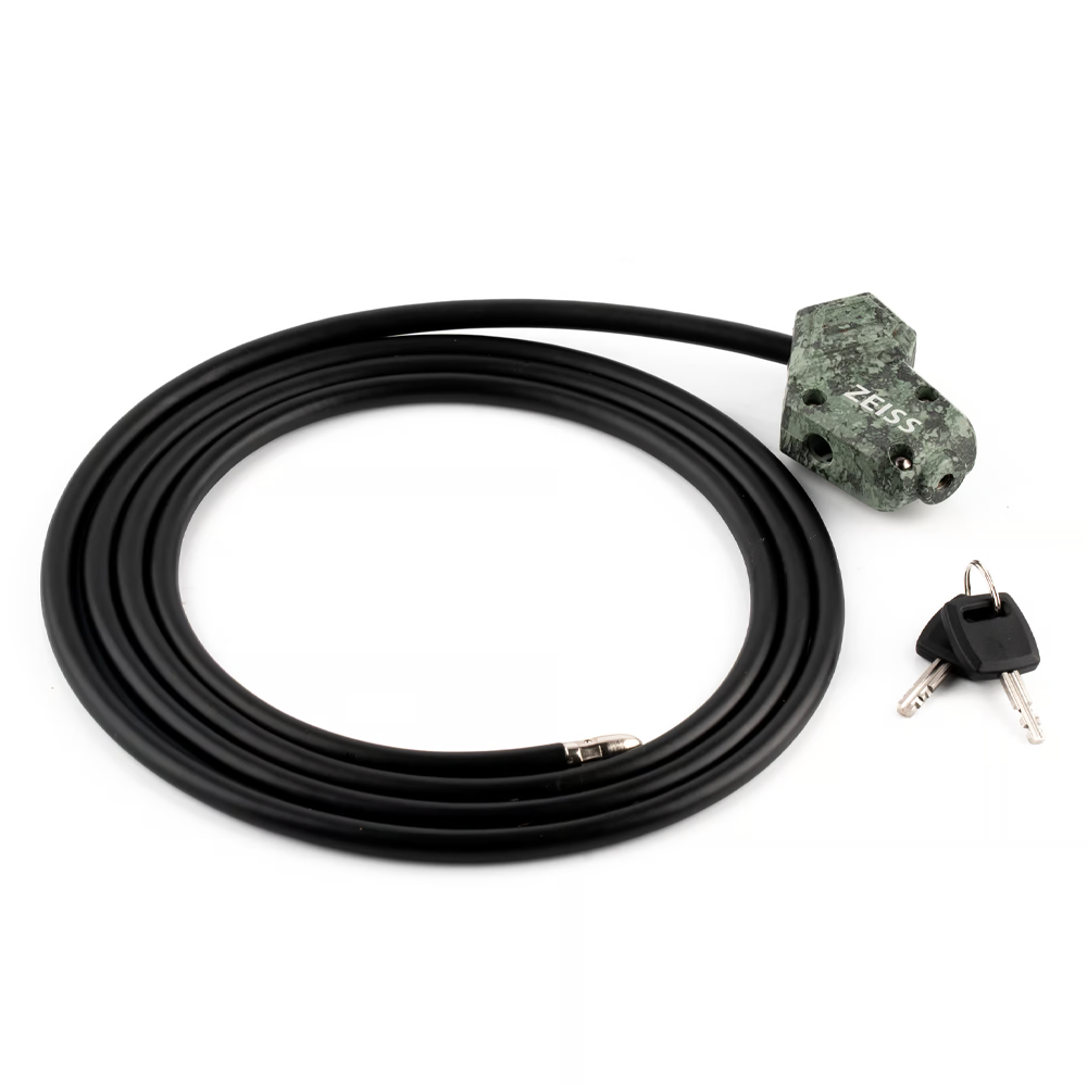 Of je nu in een vogelkijkhut zit, op reis bent of apparatuur in de auto achterlaat, het ZEISS kabelslot biedt een extra laag bescherming. Het is geschikt voor vrijwel alle optische producten met bevestigingspunt en past perfect bij de hoge kwaliteitsstandaard van ZEISS.