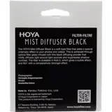 Dit 55 mm Mist Diffuser Black No. 1 Filter van Hoya verspreidt lichtbronnen om een zacht gloeiend effect rond hoge lichten te creëren. Het vermindert het algemene contrast, maar vooral in de schaduwen, en helpt bij het creëren van een filmische look en filmgevoel in foto's en video. Het effect is een toename van halatie of "bloei" van hooglichten en speculaire lichtbronnen, plus een vermindering van contrast, rimpels en huidoneffenheden voor een zachtere, meer romantische uitstraling. Het effect van de Mist Diffuser Black No. 1 is vergelijkbaar met filters met de classificatie 1/4 in vergelijking met cinematic mist filters.