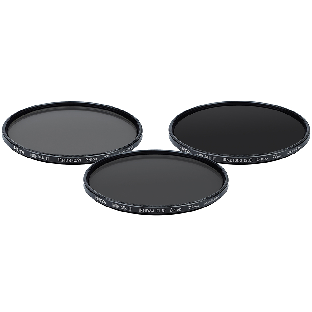 Met de HOYA HD Mk II IRND-filters kunnen fotografen effecten zoals bewegingsonscherpte of vloeiende effecten creëren en krijgen ze meer creatieve controle over de belichting van hun foto's. In deze set zitten drie filters, een ND8, ND64 en ND1000 voor 3, 6 en 10 stops lichtreductie.
