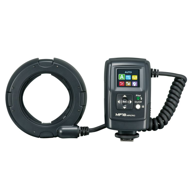 De Nissin MF18 TTL ringflitser is een macro ringflitser met richtgetal 16 (100ISO). Ook is het mogelijk de ringflitser te gebruiken als draadloze TTL flitser. De MF18 functioneert daarbij als master. Dit werkt perfect in combinatie met de Nissin Di866 Mark II en originele Sony flitsers. Alle instellingen van de ringflitser kunnen eenvoudig aangepast worden via het menu op het handige kleurendisplay. Het is mogelijk om firmware upgrades te installeren via de USB-aansluiting van de flitser.