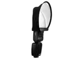 Je klikt de Soft Bounce eenvoudig op de magnetische accessoirevatting van de A1 of A1X en draait de flitskop omhoog zodat het flitslicht in de Soft Bounce terecht komt. Hierdoor wordt het licht behoorlijk verstrooid, waardoor het onderwerp een veel zachtere verlichting krijgt en schaduwen minder donker worden. De Soft Bounce is ultralicht en gemakkelijk in en uit te vouwen, een beschermende hoes wordt meegeleverd. Je kunt de Soft Bounce combineren met de andere modifiers voor de A1, zoals de Gel Kit.