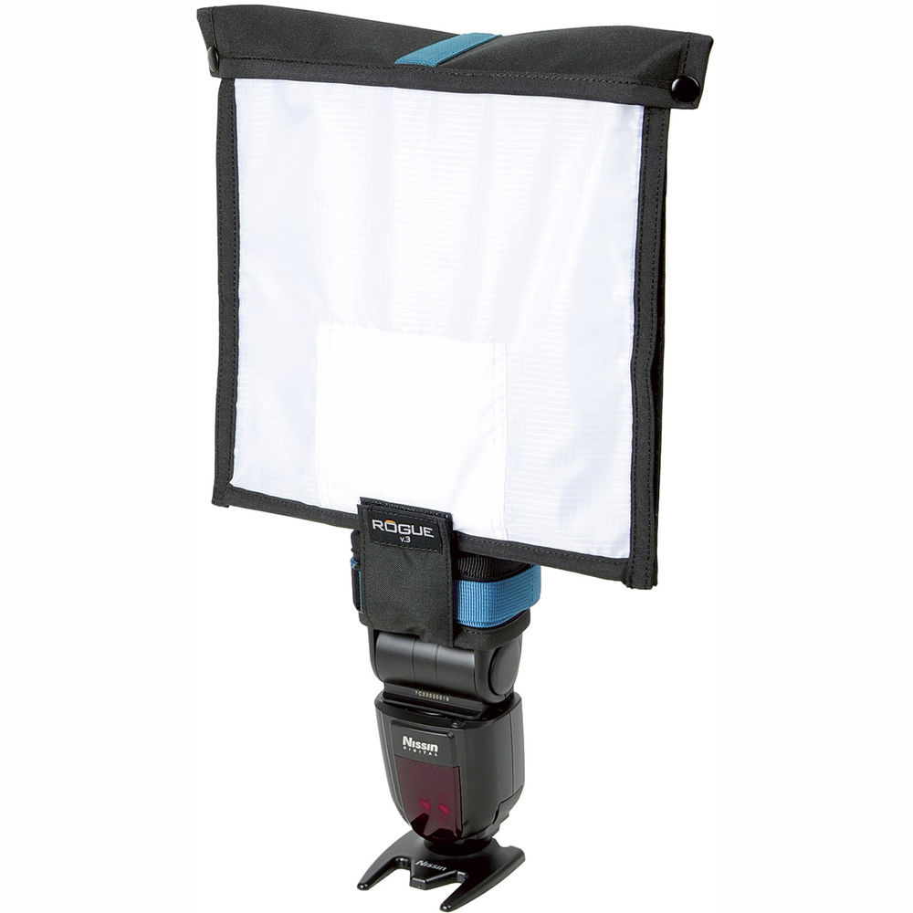 Wanneer de grote FlashBender v3 Reflector op jouw flitser op de camera is bevestigd, zal hij het flitsvermogen verzachten, of je nu binnen - of buiten in de open lucht fotografeert. Deze veelzijdige modifier kan worden gebruikt met een on-camera flitser of off-camera in multi-light setups om het licht op je hoofd-, achtergrond-, accent- of haarlicht te vormen en te richten. Voor een nog zachter licht, of om indirect flitslicht te elimineren omdat je fotografeert onder een off-color of hoog plafond, verander je de FlashBender eenvoudig in een softbox door het meegeleverde Rogue Diffusion Panel v3 te bevestigen.