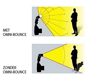 Veel betere flitsfoto's, dat is wat de Omni-Bounce u biedt. Géén slagschaduw, zacht flitslicht en niet meer die uitgesproken hardere foto's die u normaal gewend bent bij flitsen. Dit unieke product is, zonder klitteband o.i.d., direct en eenvoudig op de flitser te bevestigen en ook weer gemakkelijk te verwijderen. Vanwege de unieke constructie is de Omni-Bounce te gebruiken bij objectieven vanaf 15 mm brandpunt. Indien u de kop van de flitser zo'n 30 graden omhoog zet reflecteert het flitslicht van alle kanten om het onderwerp heen waardoor slagschaduwen worden voorkomen. Tevens wordt het directe flitslicht mooi verzacht waardoor details in lichte partijen worden behouden en huidtinten realistisch worden weergegeven, iets dat bij flitslicht zonder Omni-Bounce problematisch is. Ook voor macro-opnamen is de Omni-Bounce een uitkomst.
