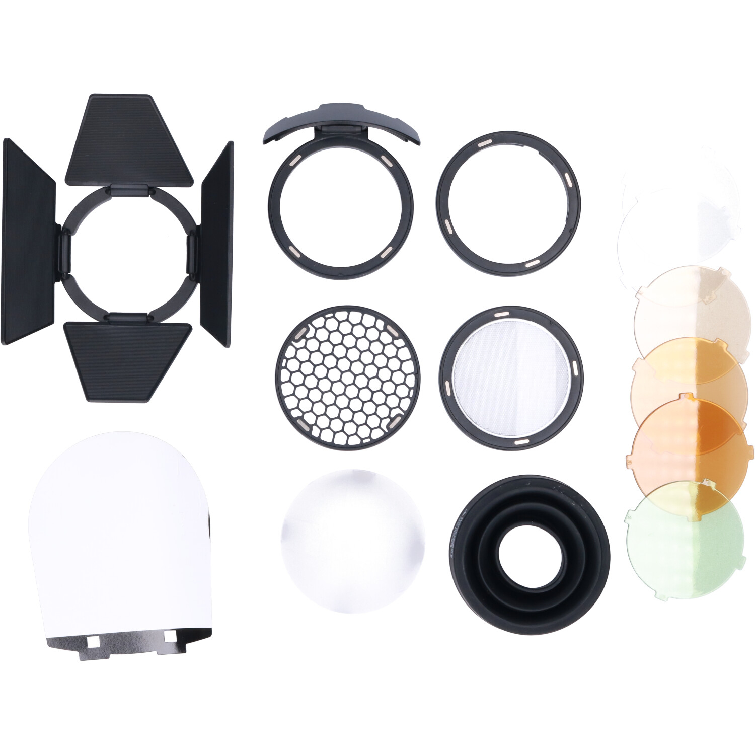 De Godox Accessoires Kit AK-R1 voor H200R Head is een accessoires kit voor de H200R. De kit bestaat uit diverse onderdelen om het lichteffect aan te passen. De kit bestaat uit een diffusion ball, diverse kleuren filters, een honey comb en een snoot. Via de magnetische aansluiting op de H200R zijn de accessoires eenvoudig te bevestigen door ze er als het ware op te klikken.