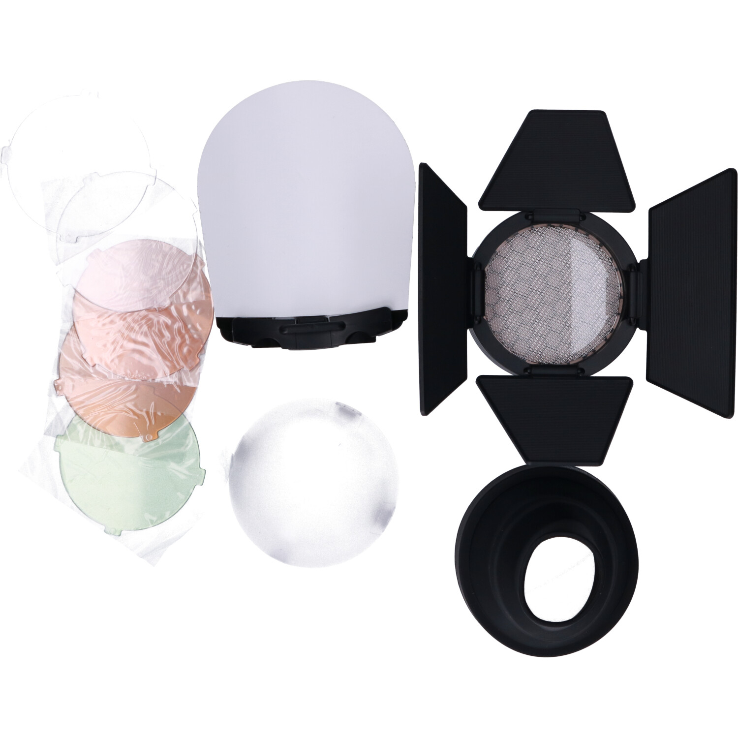 De Godox Accessoires Kit AK-R1 voor H200R Head is een accessoires kit voor de H200R. De kit bestaat uit diverse onderdelen om het lichteffect aan te passen. De kit bestaat uit een diffusion ball, diverse kleuren filters, een honey comb en een snoot. Via de magnetische aansluiting op de H200R zijn de accessoires eenvoudig te bevestigen door ze er als het ware op te klikken.