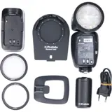 De Profoto A1 is in elk opzicht een Profoto flitser, maar alleen veel kleiner. Door zijn ronde flitskop biedt hij prachtig en natuurlijk licht. Deze unieke flitser beschikt over TTL-meting, een superkorte flitsinterval, een krachtige accu en een extreem eenvoudige bediening. De Profoto A1 wordt compleet geleverd met een Dome Diffusor, Wide Lens, Bounce Card, standaard en tas. Dit is de versie voor Nikon.