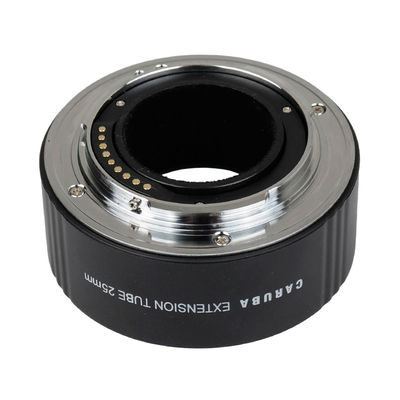 De Caruba Extension Tube (tussenring) heeft een dikte van 25mm en is geschikt voor camera's en objectieven met een Olympus Four Thirds vatting. Tussenringen hebben geen optische elementen en daardoor is het mogelijk om onderwerpen groter én van dichterbij in beeld te brengen, zonder de kwaliteit van het beeld negatief te beïnvloeden. De tussenringen hebben een chromen vatting. Opties zoals de automatische scherpstelling en TTL lichtmeting blijven gewoon werken. Wel is het aan te raden om handmatig scherp te stellen, omdat de scherpte erg nauw luistert.