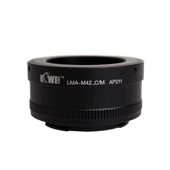 Met de Kiwi LMA-M42_C/M Lens Mount Adapter kunt u een objectief met M42 vatting (Zeiss, Pentax, Praktica, Mamiya en Zenit) op een Canon EOS M camera gebruiken. De adapter is gemaakt van zwart geanodiseerd aluminium (camera body mount) en heeft een messing zilver (objectiefvatting). Alhoewel de lens fysiek op de body bevestigd kan worden zullen de functies zoals automatisch diafragma, auto-focus en/of andere functies niet werken. U kunt dan in de manuele stand foto's maken. Alhoewel het volledige focusbereik behouden blijft tot aan het oneindige punt moet de focus op de lens hetzelfde zijn als de f-stop. De corresponderende sluitertijd kan dan handmatig gekozen worden of de camera kan in de AV-modus gezet worden.