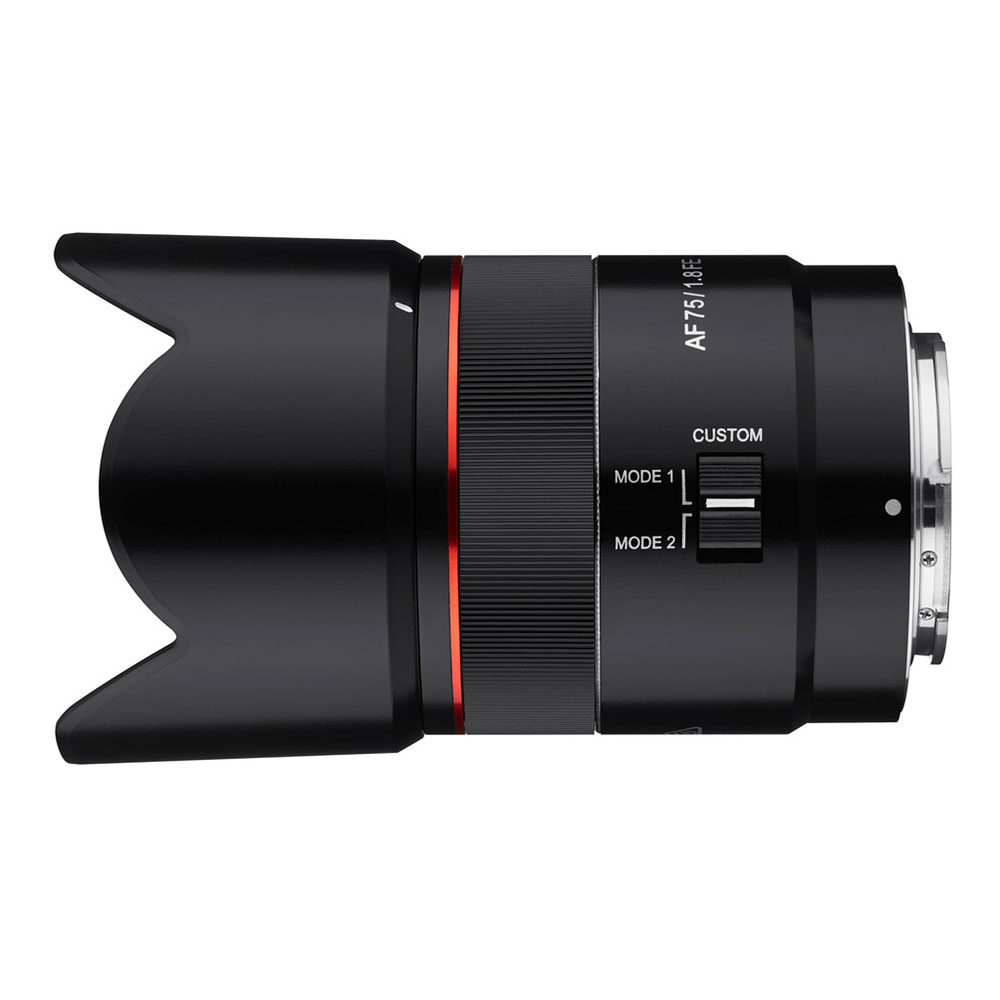 De scherpstelring heeft normaal gesproken geen functie bij gebruik van het objectief in de AF-functie. Om het nut en gebruik van deze ring te vergroten, heeft Samyang een 'Custom Switch' geïntroduceerd. Hierme kan de gebruiker onder andere met behulp van de scherpstelring het diafragma aanpassen. De 'Custom Switch' voegt extra bedieningsmogelijkheden aan het autofocus objectief toe. Middels firmware-update(s) zullen in de nabije toekomst nog meer functies aan het gebruik van de 'Custom Switch' toe te voegen zijn, zodat de Samyang AF 75mm f/1.8 FE nog verder aan te passen is aan de voorkeur van de fotograaf (denk bijvoorbeeld aan belichtingscorrectie). Dit kan de gebruiker zelf doen met behulp van het apart verkrijgbare Samyang Lens Station.