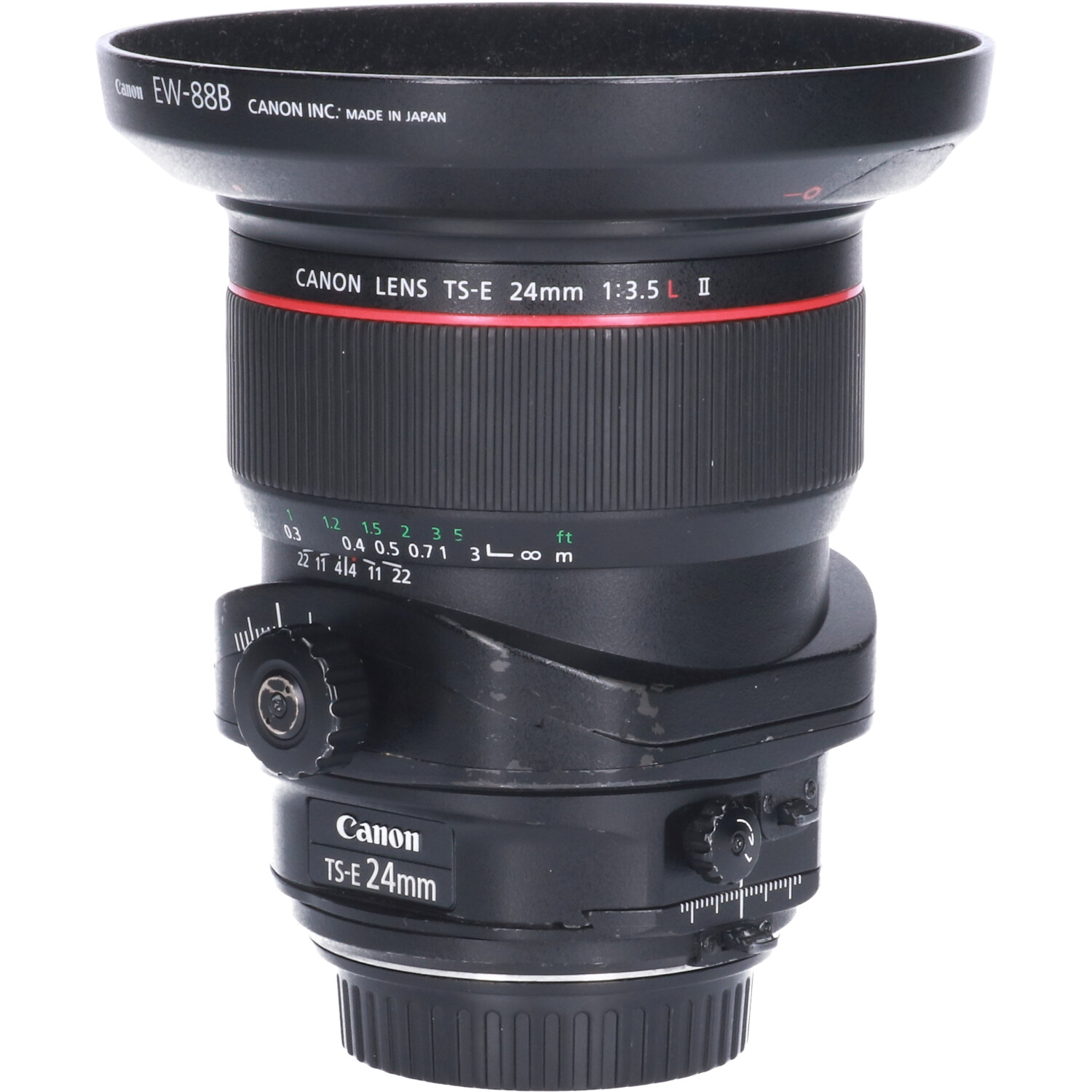Grootste bewegingsbereik Met een brandpuntsafstand van 24 mm, een grote kijkhoek, een kanteling van ± 8,5°, een verschuiving van ± 12 mm en ± 90° rotatie voor zowel het kantel- als verschuivingsmechanisme, biedt de TS-E 24mm f/3.5L II uitzonderlijke flexibiliteit. De kantel- en verschuivingsmechanismen van de TS-E 24mm f/3.5L II kunnen bovendien worden vergrendeld om ongewenste bewegingen te voorkomen.