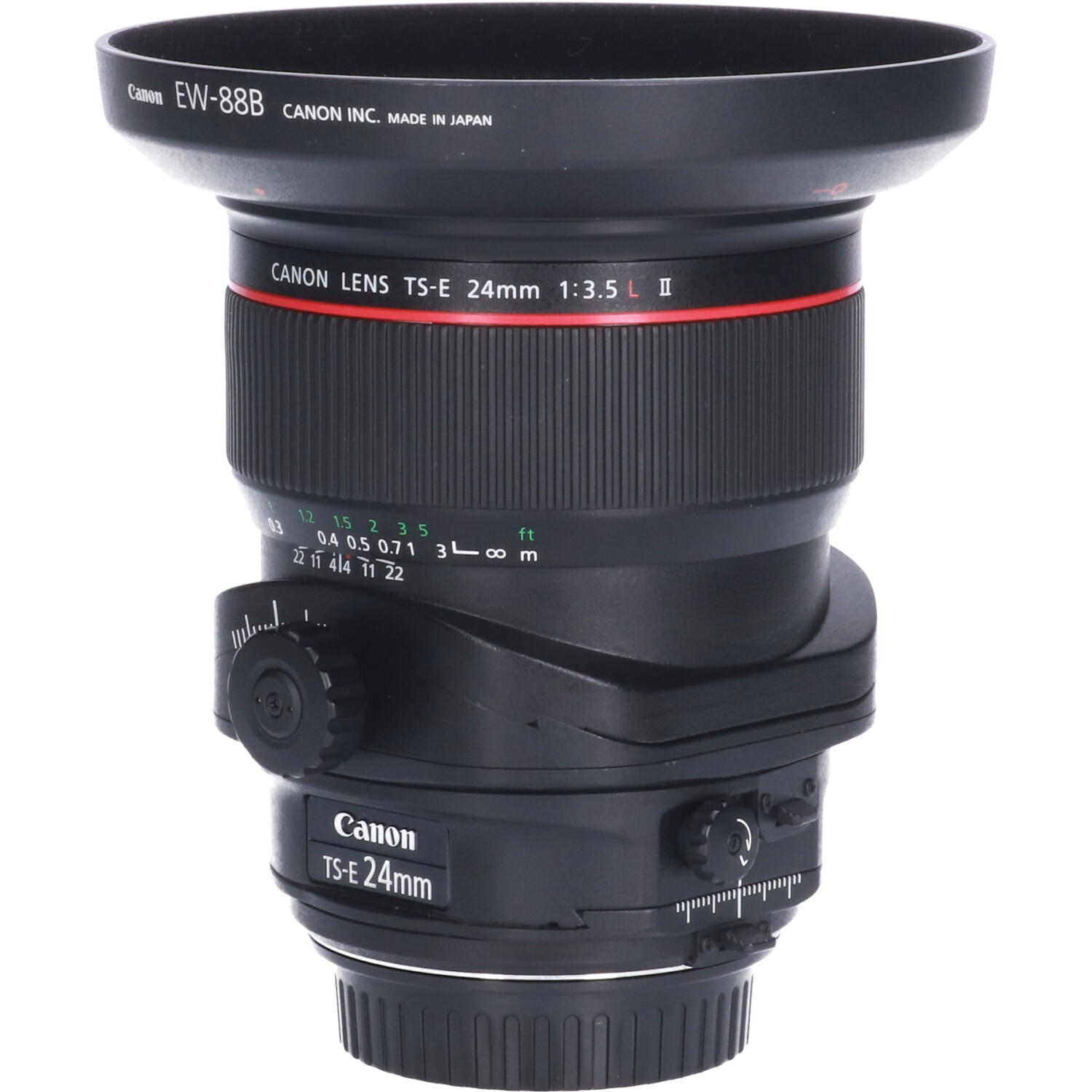 Grootste bewegingsbereik Met een brandpuntsafstand van 24 mm, een grote kijkhoek, een kanteling van ± 8,5°, een verschuiving van ± 12 mm en ± 90° rotatie voor zowel het kantel- als verschuivingsmechanisme, biedt de TS-E 24mm f/3.5L II uitzonderlijke flexibiliteit. De kantel- en verschuivingsmechanismen van de TS-E 24mm f/3.5L II kunnen bovendien worden vergrendeld om ongewenste bewegingen te voorkomen.