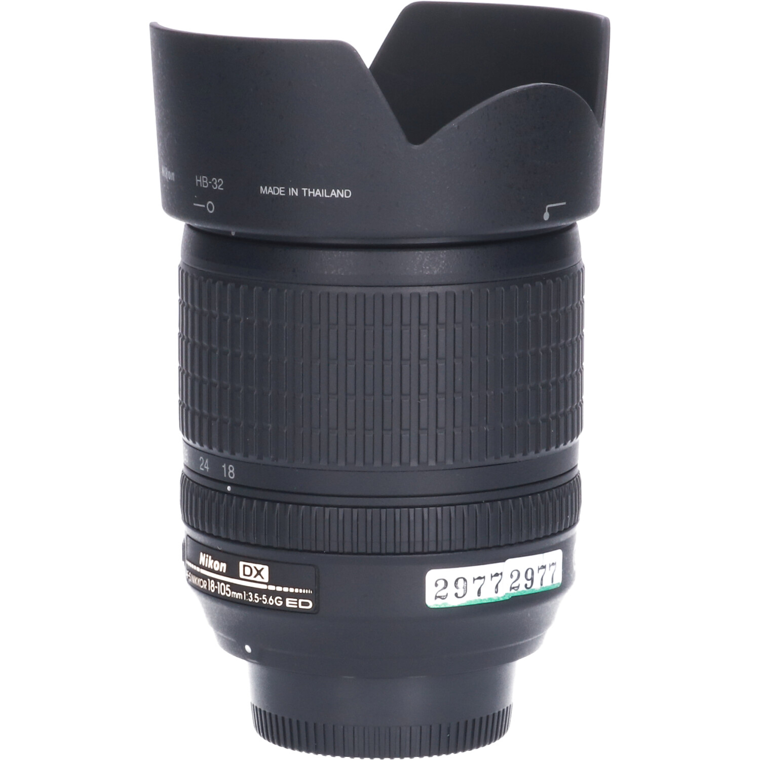- Krachtig DX-formaat objectief met 5,8x zoom en een zoombereik van 18-105 mm (equivalent in kleinbeeld- en Nikon FX-formaat: 27-157,5 mm).