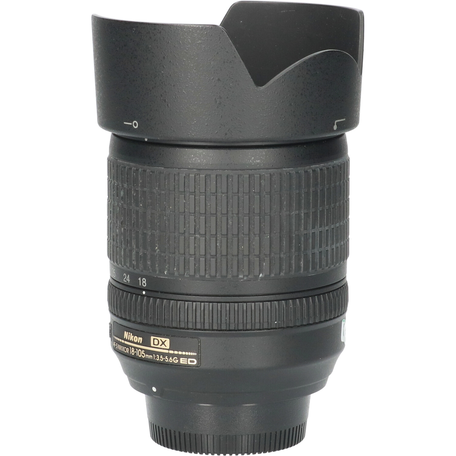 - Krachtig DX-formaat objectief met 5,8x zoom en een zoombereik van 18-105 mm (equivalent in kleinbeeld- en Nikon FX-formaat: 27-157,5 mm).