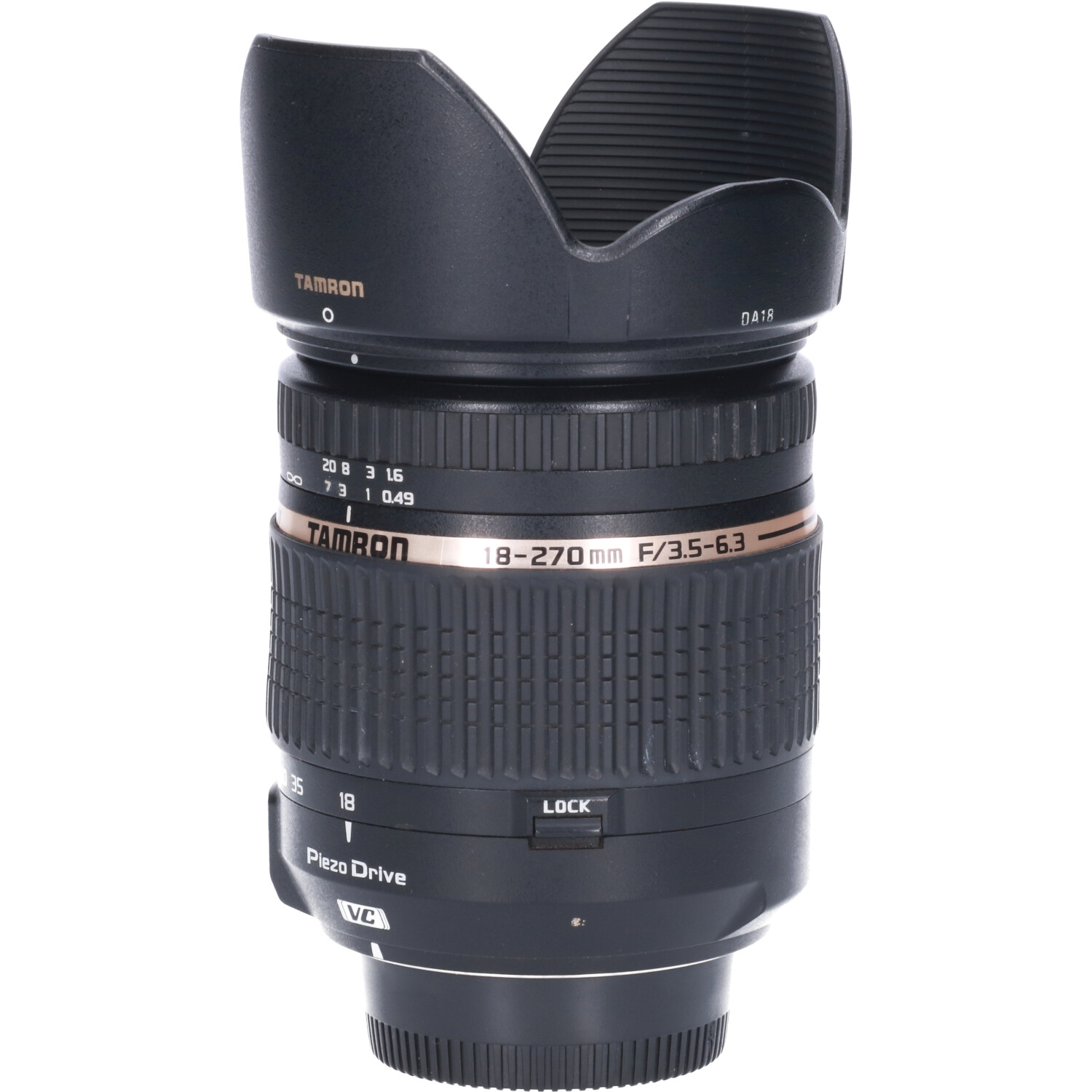 De Tamron 18-270/3.5-6.3 Di II VC PZD is een mega reiszoomlens met een bereik van 18-270mm. De lens bezit een piëzo ultrasone motor, die een stille, nauwkeurige en zeer snelle autofocus mogelijk maakt. Verder werd de unieke (VC) vibratietechnologie verbeterd om een compacter ontwerp mogelijk te maken. De lens valt op door de veelzijdige gebruiksmogelijkheden, met name door het zoombereik dat zowat elke fotografische situatie aankan. De compacte, lichtgewicht constructie maakt deze lens tot de ideale reisgenoot. Met deze lens kunt u alles fotograferen, van groothoek voor landschap tot tele voor close-up fotografie en is tevens geschikt voor licht macrowerk, met een max. vergrotingsmaatstaf van 1:3,8 over het gehele zoombereik om kleine voorwerpen groot weer te kunnen geven.